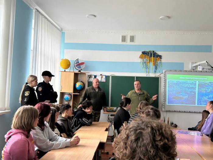 Викладачі ознайомили ліцеїстів із правилами мінної безпеки, наголосивши на актуальності цієї теми в умовах воєнного стану. Учням розповіли про основні види вибухонебезпечних предметів, характерні ознаки мін і боєприпасів, а також про порядок дій у разі їх виявлення. Особливу увагу приділили алгоритму інформування компетентних органів – поліції, ДСНС та місцевих органів влади. Присутнім нагадали, що категорично забороняється наближатися до підозрілих предметів, брати їх до рук чи намагатися самостійно перемістити.