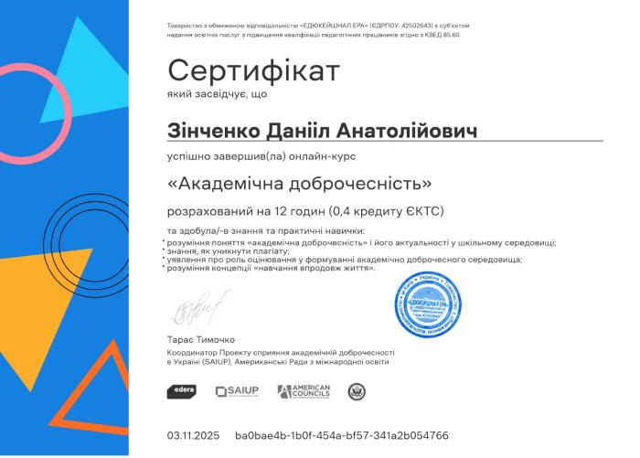 • розуміння поняття «академічна доброчесність» та її актуальності в освітньому середовищі;