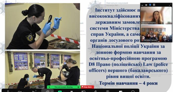 Доцентка кафедри кримінального права і кримінології навчально-наукового інституту №1 кандидатка юридичних наук, доцентка Ксенія ЮРТАЄВА провела онлайн-зустріч зі старшокласниками Вашківецького закладу загальної середньої освіти І-ІІІ ступенів імені Івана Бажанського Вижницького району Чернівецької області. У форматі відеоконференції. викладачка розповіла учням про структуру Харківського національного університету внутрішніх справ та спеціальності, за якими здійснює підготовку виш, звернула увагу на можливість навчання за державним замовленням і за кошти фізичних та юридичних осіб. Доцентка окреслила переваги навчання у ХНУВС, зокрема звернула увагу на матеріальне забезпечення курсантів, що здобувають освіту за державним замовленням, можливість пройти автокурси в безбар’єрній автошколі та отримати посвідчення водія категорії «В», брати участь у гуртках самодіяльності, залучатися до заходів Школи наукового лідерства та курсантсько-студентського самоврядування тощо. Наприкінці зустрічі Ксенія ЮРТАЄВА відповіла на запитання майбутніх абітурієнтів та надала необхідні посилання на сторінку для вступників до ХНУВС https://univd.edu.ua/uk/dir/3/vstupnyku, а також звернула увагу на необхідність своєчасного подання заявки на вступ до університету через сайт Національної поліції України https://osvita.np.gov.ua.