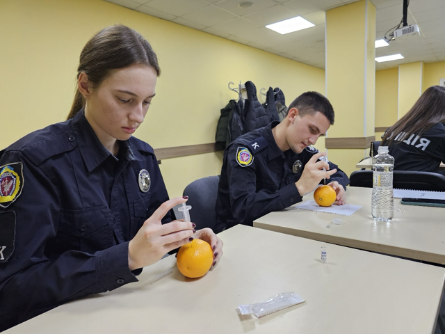 Під час тренінгу курсанти відпрацьовували алгоритми взаємодії з ВІЛ-інфікованими особами, які вживають ін’єкційні наркотики, та порядок надання домедичної допомоги у разі передозування. Вони ознайомилися з безпечними методами пошуку об’єктів незаконного обігу наркотиків, вивчали нормативно-правові акти, що регламентують діяльність поліції у цій сфері, а також відповідні приклади слідчої і судової практики.