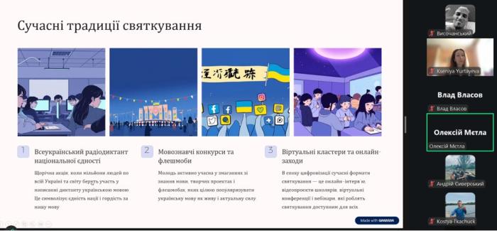 Наприкінці зустрічі учасники разом із Ксенією ЮРТАЄВОЮ обговорили традиції святкування Дня української мови та писемності, історичні виклики, що постали перед українською мовою, та особисту відповідальність кожного громадянина за її збереження і розвиток.