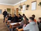 Під час зустрічі здобувач освіти розповів учням про історію університету, освітній процес, спеціальності за якими проходить навчання, зокрема в навчально-науковому інституті №4, умови проживання та дозвілля курсантів. Для кращого ознайомлення присутніх із закладом вищої освіти було представлено презентацію про діяльність вишу, його структуру та матеріально-технічну базу.