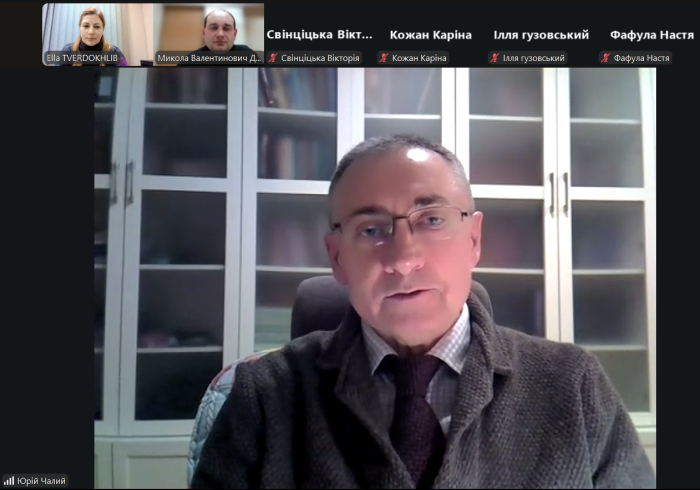 Заступник директора навчально-наукового інституту №5 Елла ТВЕРДОХЛІБ і доцент кафедри цивільного права та процесу Юрій ЧАЛИЙ організували та провели онлайн-зустріч зі студентами випускного курсу Звягельського медичного фахового коледжу Житомирської обласної ради.