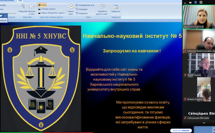 Елла ТВЕРДОХЛІБ розповіла про історію створення ХНУВС, його структурні підрозділи, науково-педагогічний склад, умови функціонування університету в період дії режиму воєнного стану, а також про освітні ступені і спеціальності, за якими здійснюється підготовка майбутніх фахівців.
