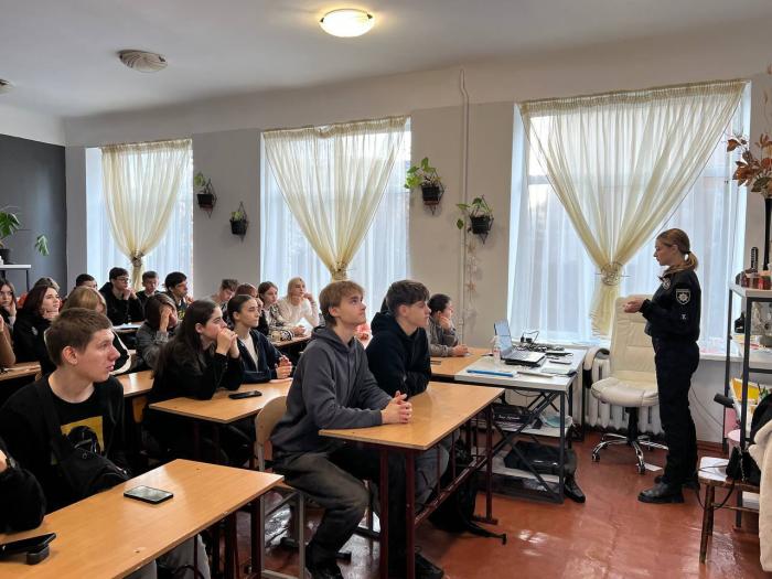 Вона розповіла про умови навчання у Харківському національному університеті внутрішніх справ, практичну підготовку та можливості майбутнього працевлаштування. Учні дізнались про переваги служби в Національній поліції, важливість професії правоохоронця, роль поліцейського у забезпеченні правопорядку та безпеки громадян.