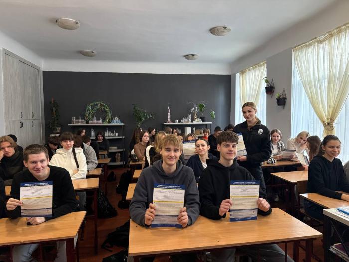 Курсантка першого курсу навчально-наукового інституту №4 Олександра БАНІТ зустрілася з учнями 11-х класів Рівненського ліцею «Колегіум» з метою ознайомлення їх із особливостями навчання у закладі вищої освіти системи МВС.