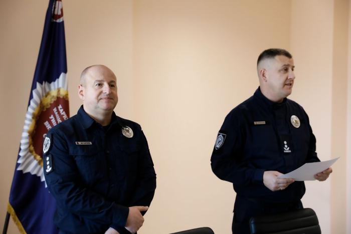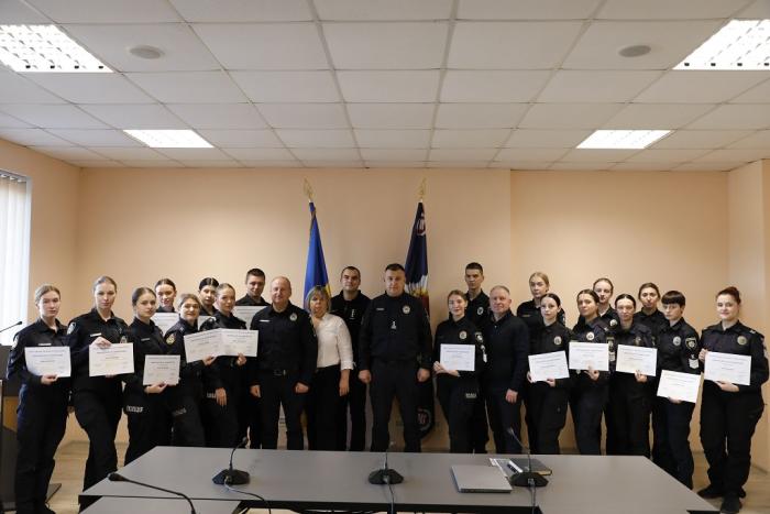 Проректор ХНУВС Олександр МУЗИЧУК і директор навчально-наукового інституту №3 Геннадій ЗВІРЯНСЬКИЙ вручили сертифікати курсантам спеціальності «Психологія» за успішне проходження сертифікованого європейського тренінгу «Перша психологічна допомога – тренінг тренерів» (Psychological First Aid – Training of Trainers, ToT, 40 годин, 17,5 ECTS).