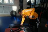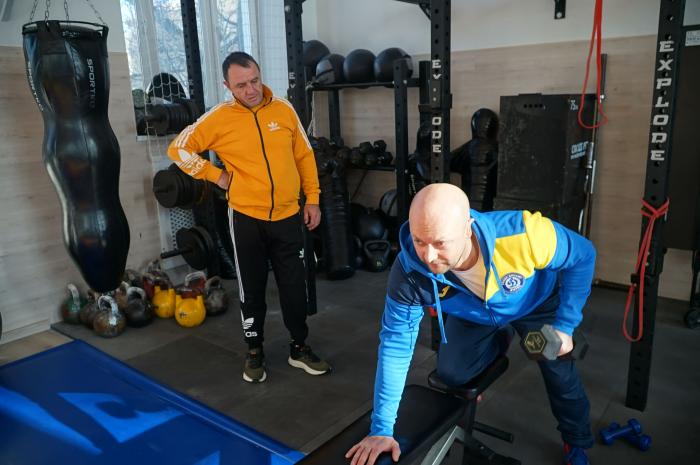 Під час тренування використовувалися гумовий експандер, гантелі та фітбол, що дозволило поєднати силові, стабілізаційні та функціональні вправи. Такий формат забезпечив безпечне виконання рухів та ефективну роботу над зміцненням глибоких м’язів спини.