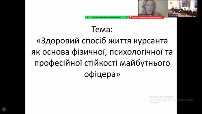 Виховну годину з курсантами навчально-наукового інституту №1 провела кураторка навчальної групи Світлана КНИЖЕНКО на тему «Здоровий спосіб життя курсанта як основа фізичної, психологічної та професійної стійкості майбутнього офіцера».