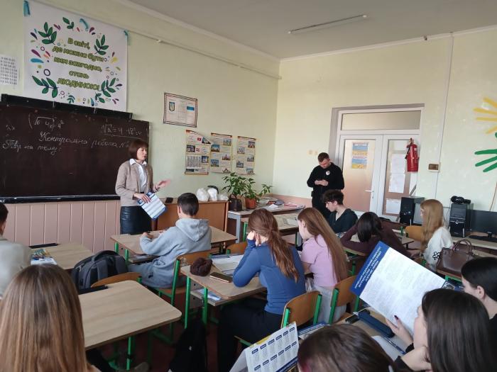 Працівники відділу відповіли на запитання учасників зустрічі: учнів, вчителів, батьків та надали їм інформаційні матеріали.