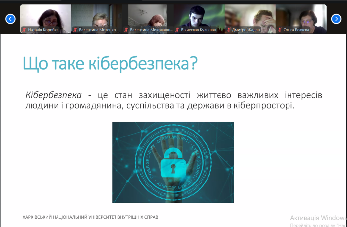 Заступниця директора навчально-наукового інституту №5 Елла ТВЕРДОХЛІБ і старший викладач кафедри кібербезпеки та DATA-технологій Михайло ЦУРАНОВ провели онлайн-зустріч з учнями Дергачівського ліцею №3 на тему «Кібербезпека: захист і професія».