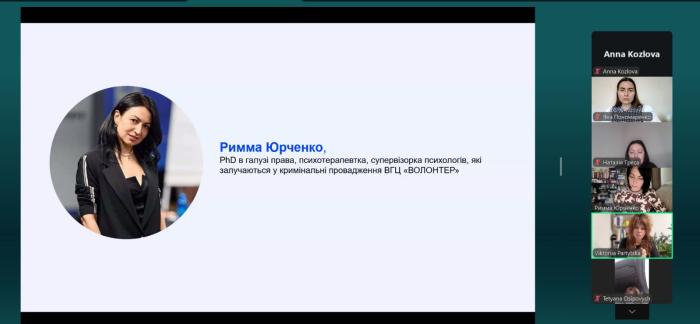 Спікерки Анна КОЗЛОВА, Вікторія ПАРТИЦЬКА та Римма ЮРЧЕНКО детально розкрили питання участі психолога під час судового розгляду.