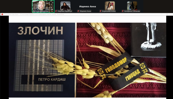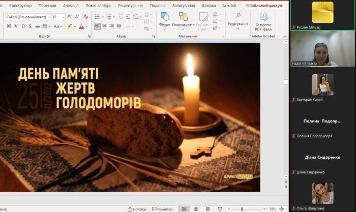 Куратори навчально-наукового інституту №5 провели в закріплених групах тематичні виховні години, присвячені вшануванню пам’яті жертв Голодомору 1932-1933 років, а також жертв масових штучних голодів 1921-1922 та 1946-1947 років. Цей день в Україні проходить щороку в четверту суботу листопада. Під час бесід студенти дізнавались про історичні події, в результаті яких Україна втратила мільйони людських життів. Куратори також закликали молодь приєднатись до загальноукраїнської акції «Запали свічку» як символу вшанування безвинно загиблих жертв тоталітарного режиму.