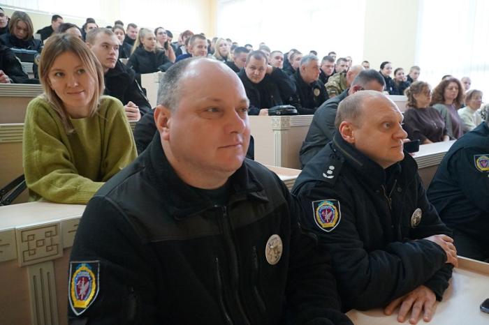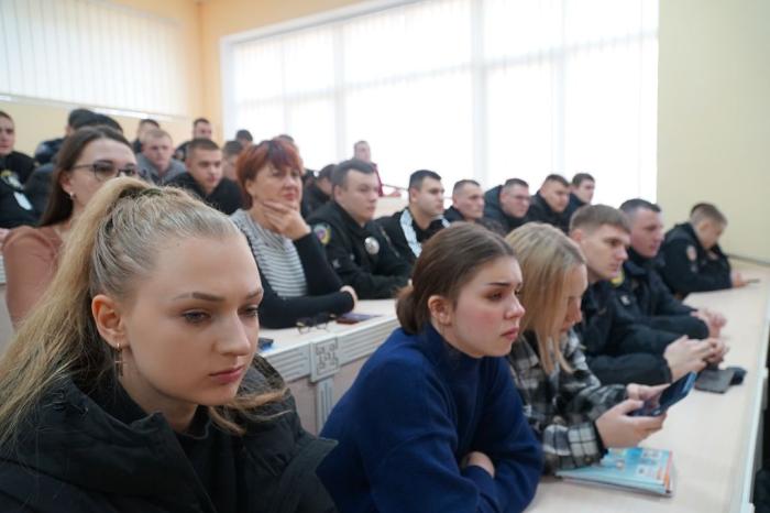 Для здобувачів освіти, працівників і керівництва ННІ №1, 4 та 5 інструктивне заняття з дотримання транспортної дисципліни та безпеки дорожнього руху провели представники Управління патрульної поліції Хмельницької області Департаменту патрульної поліції – старший інспектор відділення розшуку та опрацювання матеріалів дорожньо-транспортних пригод батальйону патрульної поліції Кам’янець-Подільського району Микола ПАСІЧНИК і старша інспекторка групи зв’язків з громадськістю Ганна ОГОРОДНИК.