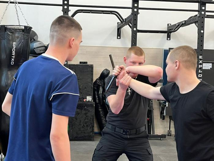 Працівники групи оперативного реагування Кам'янець-Подільського батальйону патрульної поліції Євген ПАЗЮК та Вадим ВОЗИЛА провели тренування для майбутніх слідчих і дізнавачів. Кожен рух під час затримання правопорушника – з холодною чи вогнепальною зброєю – патрульні демонстрували та пояснювали на реальних прикладах.