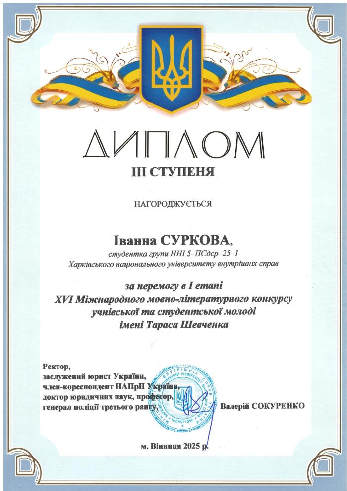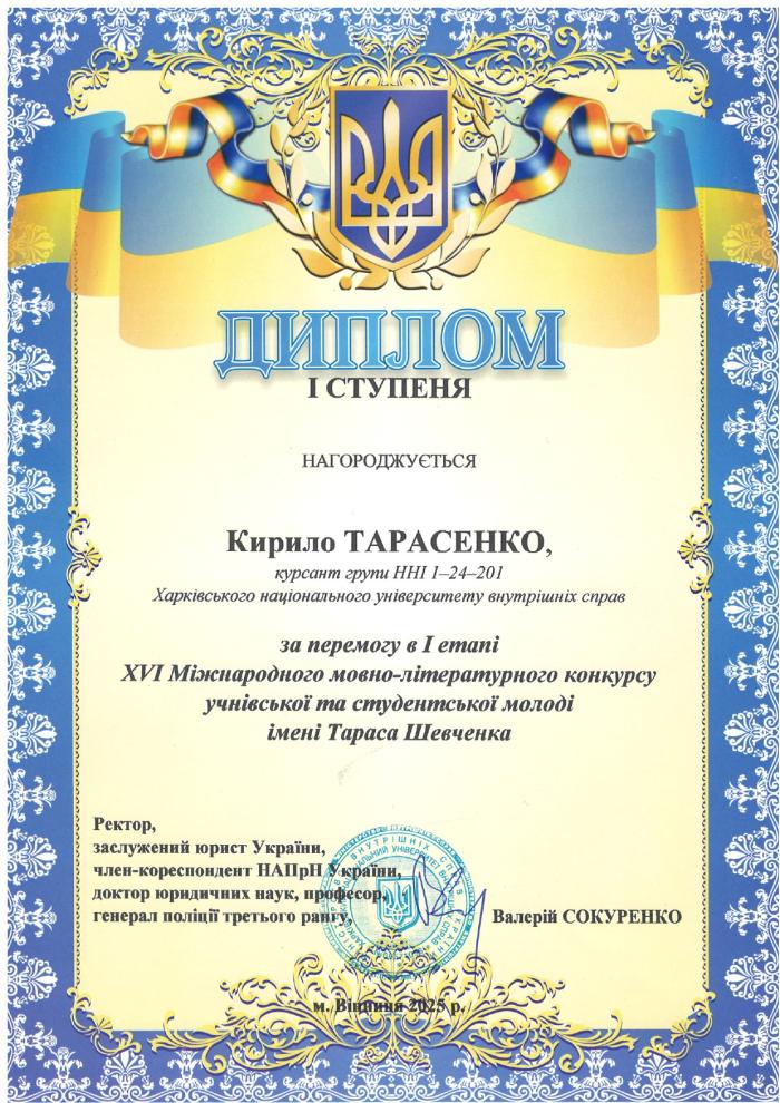 Переможцями І етапу ХVІ Міжнародного мовно-літературного конкурсу учнівської та студентської молоді імені Тараса Шевченка в категорії «Курсанти» стали: