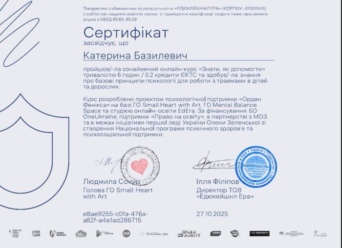 За результатами проходження курсу студенти отримали сертифікати, що підтверджують їхню обізнаність у сфері базової психологічної допомоги.