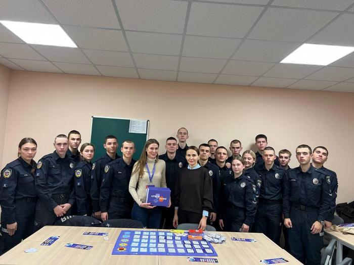 За ініціативи старшої викладачки кафедри адміністративної діяльності ННІ №3 Наталії ГРОМ до курсантів завітала доцентка кафедри права Вінницького торгівельно-економічного інституту Державного торгівельно-економічного університету, практикуюча адвокатка та сертифікована фасилітаторка гри «Криголами» Ірина БІЛОУС.