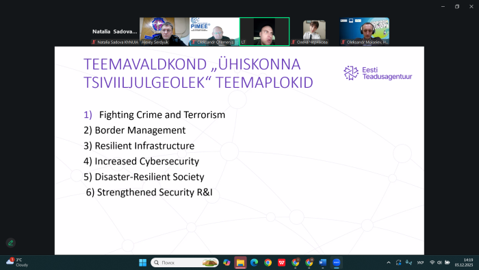 Спікерами заходу виступили: НКП програми «Горизонт Європа» за напрямом «Цивільна безпека для суспільства» в Естонії Лаурі ТЕППО (Lauri Teppo) з доповіддю про можливості фінансування; головний спеціаліст Офісу «Горизонт Європа» в Україні Олександр МОІСЕЄВ з виступом щодо особливостей формування консорціумів; НКП за напрямом «Цивільна безпека для суспільства» в Україні Олексій СЕРДЮК (ХНУВС), який розповів про типові помилки, що знижують оцінку проєктів кластеру 3.