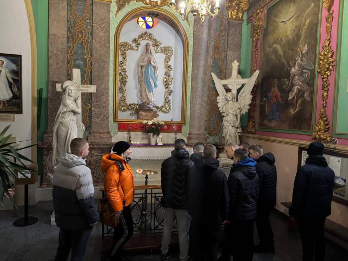 У межах культурно-освітнього розвитку молоді для першокурсників навчально-наукового інституту ННІ №4 заступницею начальника курсу Мар’яною СІДЛЕЦЬКОЮ спільно з волонтеркою Інгою ПОТАПОВОЮ була організована та проведена екскурсія до Кафедрального костелу Святих Апостолів Петра і Павла у м. Кам’яець-Подільський. Курсанти ознайомилися з єдиним у світі діючим католицьким храмом із мінаретом, його гербами, внутрішнім оздобленням і старовинними пам’ятками. Під час екскурсії молоді розповіли історію заснування костелу та його переосвячення.