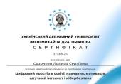 Старші викладачки кафедри мовної підготовки Лариса САЗАНОВА та Наталія ПРОЗАР завершили навчання за програмою «Цифровий простір в освіті: навчання, мотивація, штучний інтелект і кібербезпека», проведене Українським державним університетом імені Михайла Драгоманова за підтримки партнерів ЄАС (інститутів підвищення кваліфікації) та Громадської організації «Цифровізація освіти України».