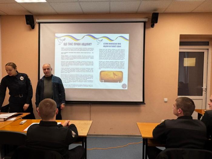 Під час семінарського заняття Олена ГОРБАНЬ наголосила на спорідненості багатьох положень розділу ІІ Конституції України з положеннями Загальної декларації прав людини. Вона також ознайомила курсантів із практикою застосування відповідних норм Конституції України у механізмі захисту процесуальних прав і свобод затриманих поліцією осіб.