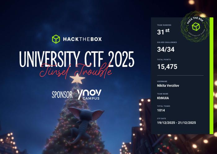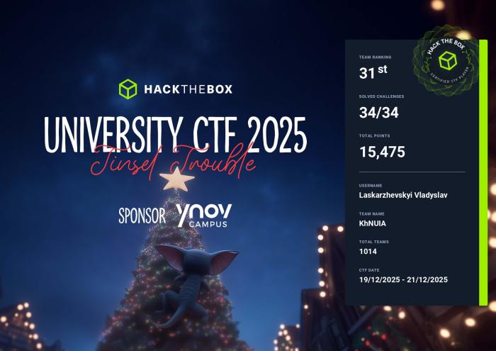 Курсанти навчально-наукового інституту №4 взяли у часть у Міжнародних змаганнях із кібербезпеки у форматі Capture the Flag – University CTF 2025, організовані компанією Hack The Box.