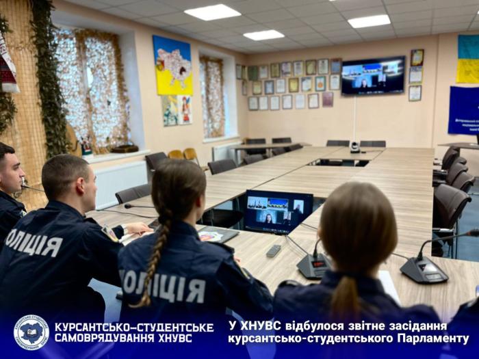 У ХНУВС відбулося звітне засідання курсантсько-студентського Парламенту Харківського національного університету внутрішніх справ. Під час зустрічі було підбито підсумки діяльності за семестр, обговорено реалізовані проєкти та ініціативи, а також окреслено плани на майбутнє.