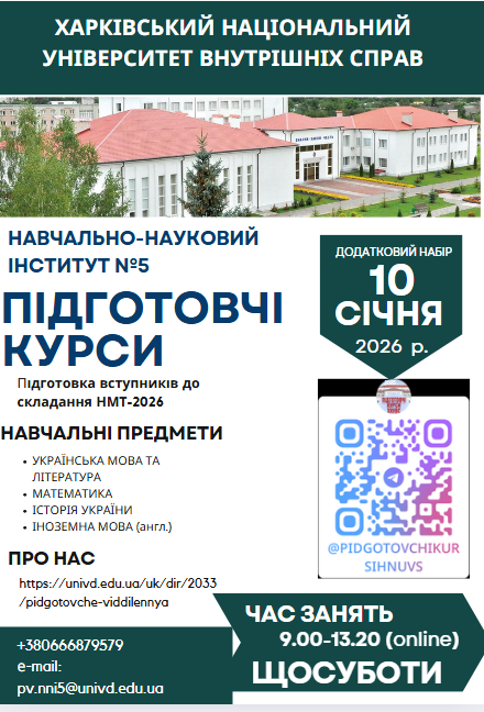 Триває черговий набір до підготовчого відділення навчально-наукового інституту №5, який розпочнеться 10 січня 2026 року. Упродовж чотирьох місяців слухачі проходитимуть підготовку до вступу до закладів вищої освіти України, передусім до Харківського національного університету внутрішніх справ.