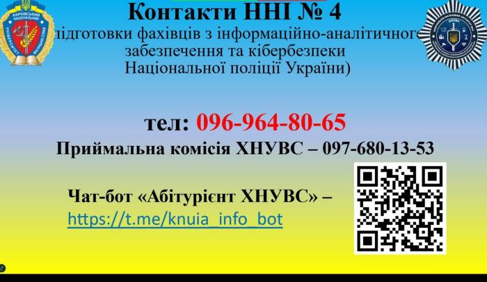 Курсант 3 курсу навчально-наукового інституту №4 Дмитро Степуренко провів онлайн-зустріч із випускниками Харківського ліцею № 12 Харківської міської ради. Він ознайомив учнів з актуальними загрозами у кіберпросторі та основними шляхами їх подолання. Окрему увагу приділено спеціальності «Кіберполіція», особливостям освітнього процесу за відповідним напрямом, вимогам до дисципліни, а також можливостям професійного та особистісного розвитку курсантів. Захід відбувся під час канікулярної відпустки здобувача освіти.