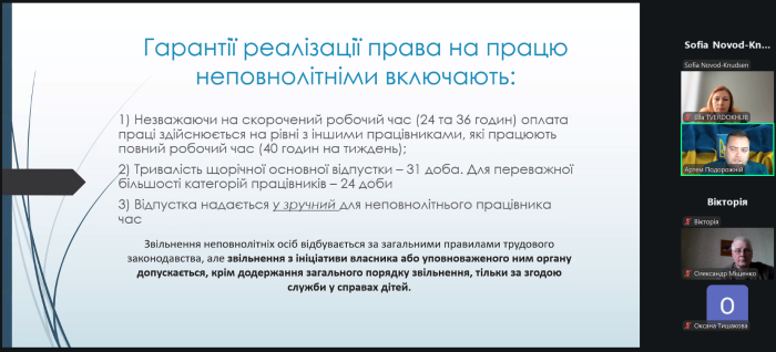 За сприяння начальниці Управління освіти адміністрації Індустріального району Харківської міської ради Олени Збицької працівники навчально-наукового інституту №5 провели онлайн-зустріч з учнями старших класів закладів середньої освіти Індустріального району району м. Харкова. До участі приєдналось понад 130 локацій. Під час заходу доцент кафедри правового забезпечення підприємницької діяльності і фінансової безпеки Артем Подорожній провів тематичну бесіду «Працевлаштування неповнолітніх в Україні».