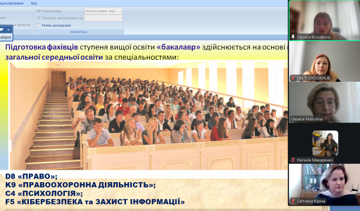 Директор Оксана Брусакова розповіла майбутнім абітурієнтам про особливості навчання в університеті, зокрема ННІ №5. Вона наголосила, що в ННІ №5 здійснюється підготовка високоякісних фахівців зі спеціальностей «Право», «Правоохоронна діяльність», «Психологія», «Кібербезпека та захист інформації».