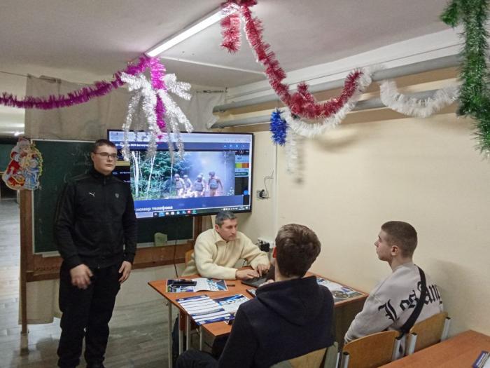 Для учнів державного ліцею з посиленою військово-фізичною підготовкою «Слобожанський» відбувся профорієнтаційний захід із курсантом першого курсу навчально-наукового інституту №4 В’ячеславом Дугою – випускником цього закладу освіти.