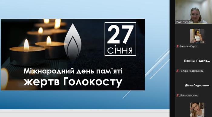 Куратори груп навчально-наукового інституту №5 провели зі студентами просвітницькі зустрічі, присвячені вшануванню пам'яті жертв Голокосту. Голокост став однією з найстрашніших сторінок світової історії. Було винищено цілі родини й покоління – разом із людськими життями зникли мрії, надії та культурна спадщина. За кожною цифрою стоїть особиста трагедія й неповторна доля. Обговорення цих подій сприяло усвідомленню їхніх наслідків і значення для сучасного світу, формуванню історичної пам’яті, гуманістичних цінностей і толерантності серед здобувачів вищої освіти.