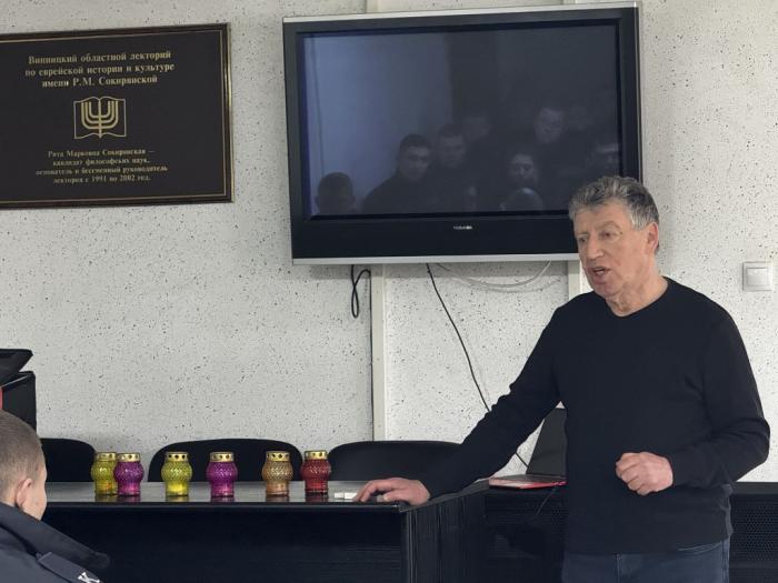 Захід провів директор музею Голокосту, дослідник історії Голокосту на території України та активний популяризатор збереження історичної пам’яті Леонід Трахтенберг. У своєму виступі він висвітлив трагічні події Другої світової війни, злочинну політику нацистського режиму щодо системного знищення єврейського народу, а також масові злочини проти мирного населення на українських землях.