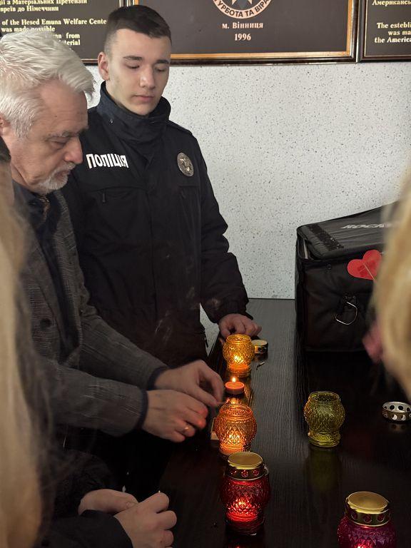 Завершенням зустрічі стала символічна акція запалювання свічок пам’яті та хвилина мовчання на вшанування мільйонів безневинних жертв Голокосту.