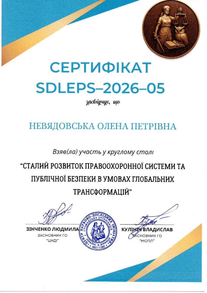 Представники відділу аспірантури (ад’юнктури) і докторантури взяли участь у круглому столі на тему «Сталий розвиток правоохоронної системи та публічної безпеки в умовах глобальних трансформацій».