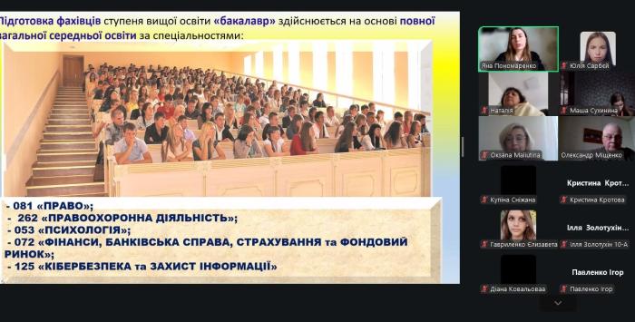 До профорієнтаційної комунікації долучилися завідувачка підготовчого відділення ННІ №5 Оксана Малютіна та провідний фахівець Олександр Міщенко. Їхні виступи доповнили захід інформацією про підготовчі курси, умови вступу та конкурентні переваги навчання в університеті.