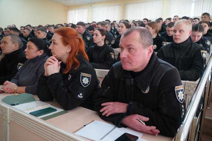 Ректор Харківського національного університету внутрішніх справ Валерій Сокуренко провів інструктаж із курсантами навчально-наукових інститутів, які здобувають освіту за спеціальностями «Право», «Кібербезпека» та «Психологія», перед їхнім стажуванням у підрозділах Національної поліції України.