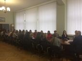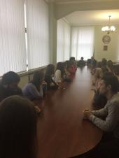 Зі студентами поспілкувалися голова суду Віталій Усатий та керівник апарату суду Олександр Поляков. Вони розповіли про судову систему України, про особливості професії судді та господарського судочинства зокрема. Віталій Олександрович побажав студентам успіхів у навчанні та майбутній професійній діяльності.