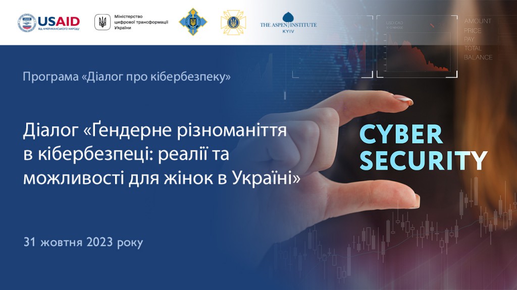 31 жовтня Проєкт USAID «Кібербезпека критично важливої інфраструктури України» у партнерстві з Аспен Інститутом Київ проведе Діалог на тему: “Ґендерне різноманіття в кібербезпеці: реалії та можливості для жінок в Україні”.