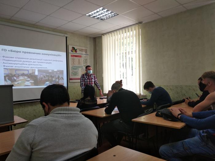 The head of the project Andrii Sukhostavets explained the details and implementation of the survey on the quality of work of the courts of Sumy region and appealed to future lawyers to join its organization as volunteers, because, according to him, active citizenship, initiative, and participation in such activities will help to acquire new knowledge and professional experience before obtaining a diploma.