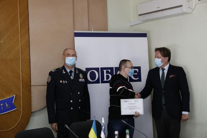 Upon completion of the training, participants received certificates presented by the OSCE Project Co-ordinator in Ukraine, Ambassador Henrik Villadsen. He thanked long-term partners on many security initiatives for fruitful cooperation, namely the Ministry of Internal Affairs, Kharkiv National University of Internal Affairs, coaches and assured that cooperation will continue and not only on psychological rehabilitation. Henrik Villadsen also expressed hope that the knowledge gained by the participants during the training will be useful in their further professional activities.