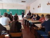 Representatives of Kharkiv National University of Internal Affairs Oleksandr Shulhin, Tetiana Boichenko and Nataliia Rastorhuieva visited Kharkiv secondary schools of I-III grades № 90 and № 95, where they communicated with 10th and 11th grade students.The events were also attended by deputy director of school № 90 Hennadii Lobusov, assistant director of school № 95 Iryna Sydorenko and teacher-organizer Nataliia Merzliakova.