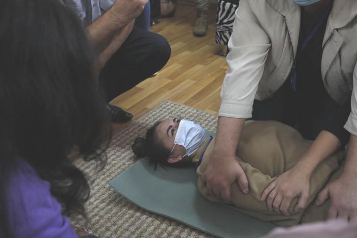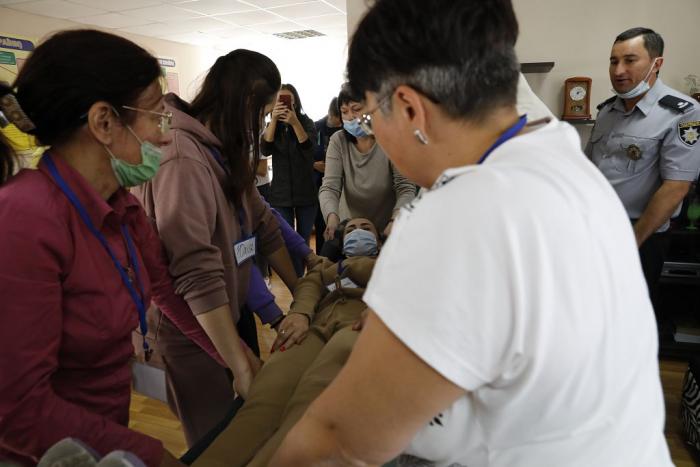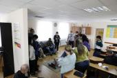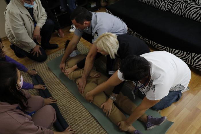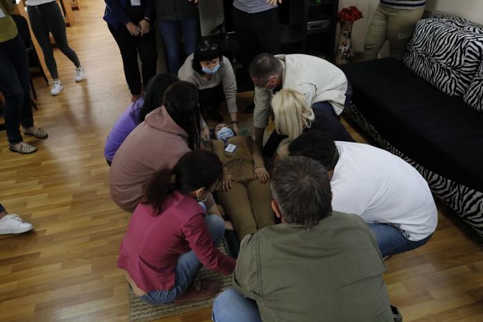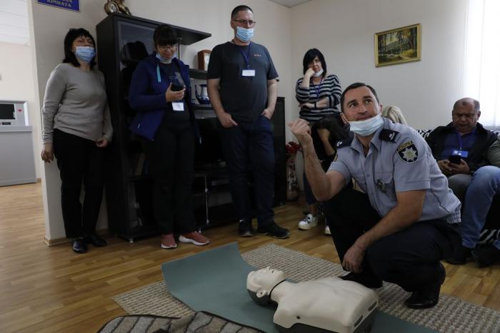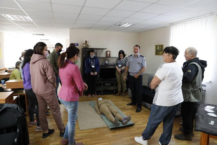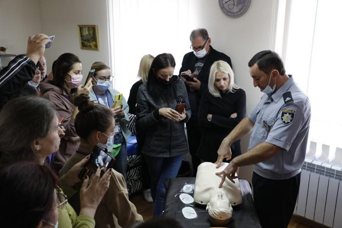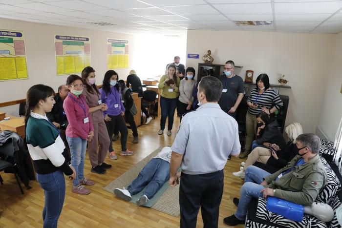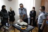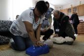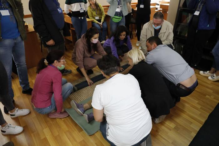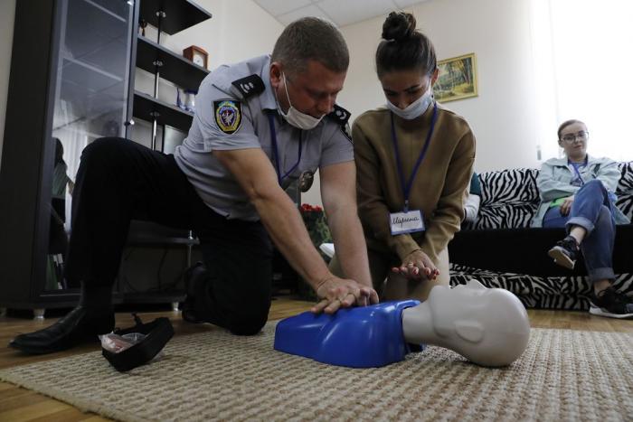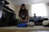 Practical part of the journalists training “Providing first-aid on standards of the international BLS program” was dedicated to acquiring skills of pre-medical care in case of sudden heart stop and life-threatening conditions. In particular, with the use of modern equipment – a mannequin for providing cardiopulmonary resuscitation and a training automatic defibrillator, the mass-media representatives consolidated theoretical knowledge with practical skills of cardiopulmonary resuscitation. They also received a lot of other useful information about the necessary and correct actions in different life situations.
