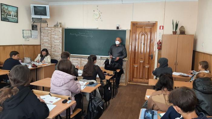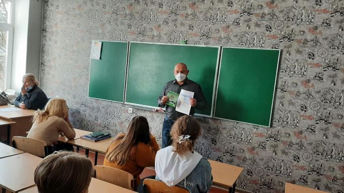 Associate Professor of the Department of Pedagogy and Psychology of the Faculty №3 Pavlo Chervonyi held a professorial meeting with the 10-11th graders of Kharkiv School №39 of the I-III grades. He spoke about the admission peculiarities and studying at KhNUIA both by state order and at the expense of individuals and legal entities. The most frequently asked questions of high school students were about applying to the recruitment center, registering and submittingm an online application, the list of subjects to pass ZNO exams, the standards for the physical fitness exam and the creativity competition. A representative of the university gave comprehensive answers to all students' questions.