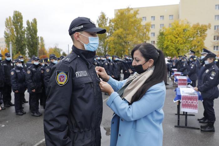 On behalf of the Minister of Internal Affairs of Ukraine Denys Monastyrskyi, the Deputy Minister of Internal Affairs Meri Akopian greeted the first-year cadets: “Today, on the bright holiday of the Intercession of the Blessed Virgin, on the Day of the Ukrainian Cossacks, on the Day of Defenders of Ukraine you join a large family of police officers.