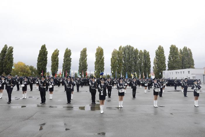 The Oath-taking ceremony began. Among the first-year cadets there are representatives of many regions of Ukraine - the largest number from Kharkiv - 254, 109 from Donetsk, 52 from Poltava, 39 from Luhansk, 30 from Sumy, 25 from Zaporizhzhia, as well as from Dnepropetrovsk, Kirovohrad, Chernihiv, Mykolaiv, Kherson, Kyiv, Volyn, Vinnytsia, Rivne, Chernivtsi, Cherkasy, Khmelnytskyi, Ivano-Frankivsk, Zakarpattia, Zhytomyr and Lviv regions. Boys and girls swore to serve Ukrainian people faithfully, comply with the Constitution and laws of Ukraine, implement them, respect and protect human rights and freedoms, the honor of the state, as well as received police badges.