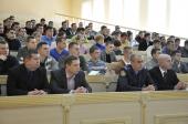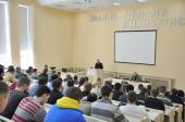 During the meeting with the course attendee the Rector colonel of police Valerii Sokurenko said that crime has no boundaries or national signs and breaches in information technology are increasing. Highly qualified specialists are needed to counteract this phenomenom. Kharkiv National University of Internal Affairs was the first among the educational institutions of the MIA of Ukraine to open a department for training IT technologies specialists in 1994. That is why the university has relevant educational base, scientific and teaching staff. Valerii Sokurenko urged students to focus on studying and to keep the discipline.