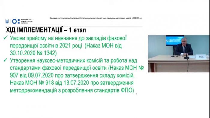 The working meeting was chaired by Oleh Sharov, Director General of the Directorate of Professional Higher Education of the Ministry of Education and Science, who explained the amendments to the Law of Ukraine “On Professional Higher Education” and the course of its implementation. He also commented on the state of the developed standards of professional higher education of Ukraine in specialties and outlined the tasks of the Sector for 2021/2022 academic year.